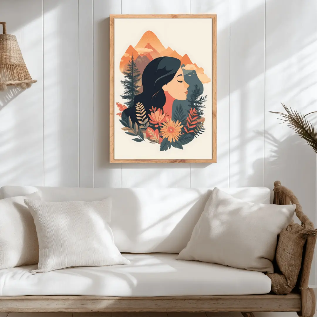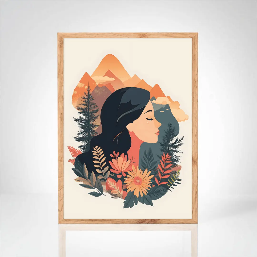 Apportez une touche de sérénité et de nature à votre intérieur avec cette sublime illustration. Ce portrait artistique fusionne la beauté féminine et
